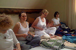 - Iedere cursusdag mediteren we met Yogi Bhajan via een DVD-lezing